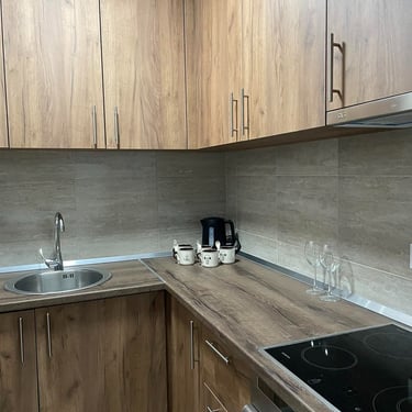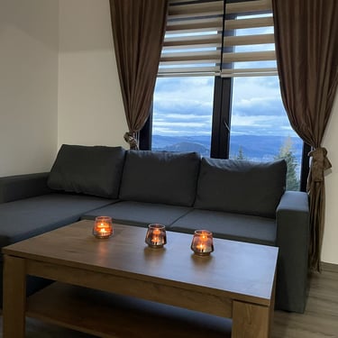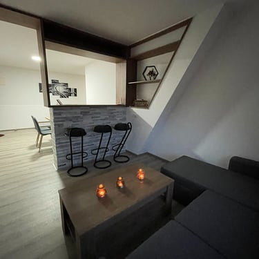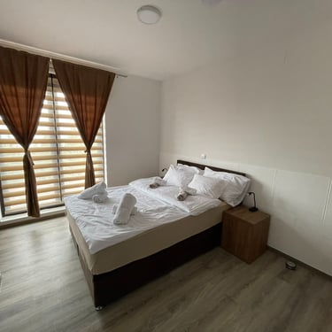 Apartman 3 sp - Ovaj apartman tipa suite posjeduje jednu spavaću sobu opremljenu bračnim krevetom 2,00m x 1,80m, SEFOM za čuvanje dragocjenosti I MINIBAROM sa osvježavajućim pićem. Kuhinja posjeduje indukcionu platu, kuvalo za vodu. Prostor za dnevni boravak raspolaže prostranom ugaonom garniturom koju je moguće adaptirati u još jedan ležaj i TV-om. Posjeduje WI-FI.
