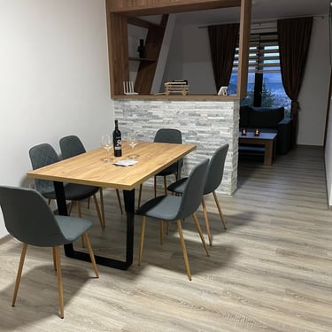 Apartman prizemlje (1) - Ovaj de lux apartman je dvosoban apartman sa prostorom za dnevni boravak, trpezarijom, kuhinjom I spa. Spavaće sobe su opremljene sa po jednim TV-om i po jednim bračnim krevetom 2,00m x 1,80m. Prostorija za boravak posjeduje ugaonu garnituru koja se može adaptirati u treći ležaj 2,00m x 1,80m. Kuhinja posjeduje električini šporet, fižider, radni sto. Apartman posjeduje zaseban spa, koji u sebi ima saunu i hidromasažnu kadu. Posjeduje sef za čuvanje dragocjenosti i WI-FI.